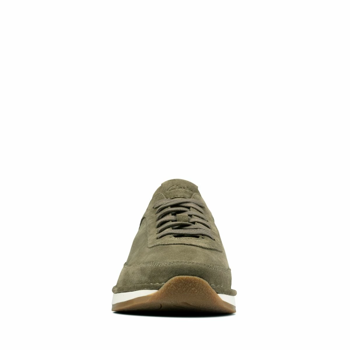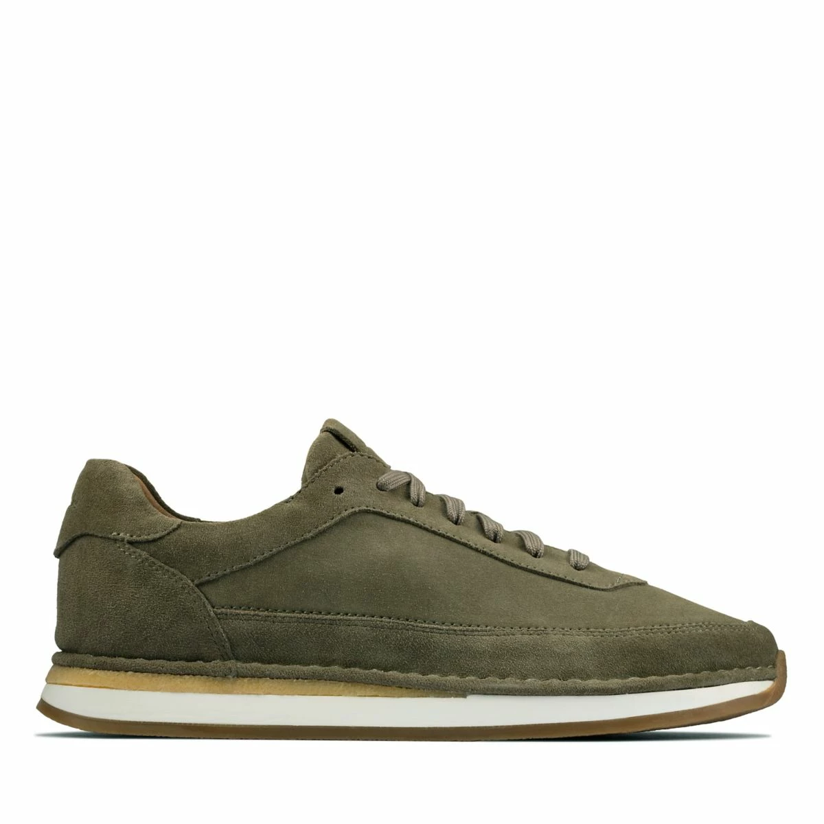 A streamlined silhouette melds with heritage styling in athleisure-inspired sneaker Craft Run Lace. Responsibly sourced rich olive suede teams with a crepe layer in the sole, for a fresh take on archival Clarksdesign that’s ready for spring and summer. Expertly crafted for life on-the-go, lightweight, grippy and durable soles keep you moving with ease, combining with removable Cushion Plus footbeds and breathable leather linings for unbeatable all-day comfort. Recycled materials in footbeds and soles step towards lightening our footprint, too. Simplicity at your feet.