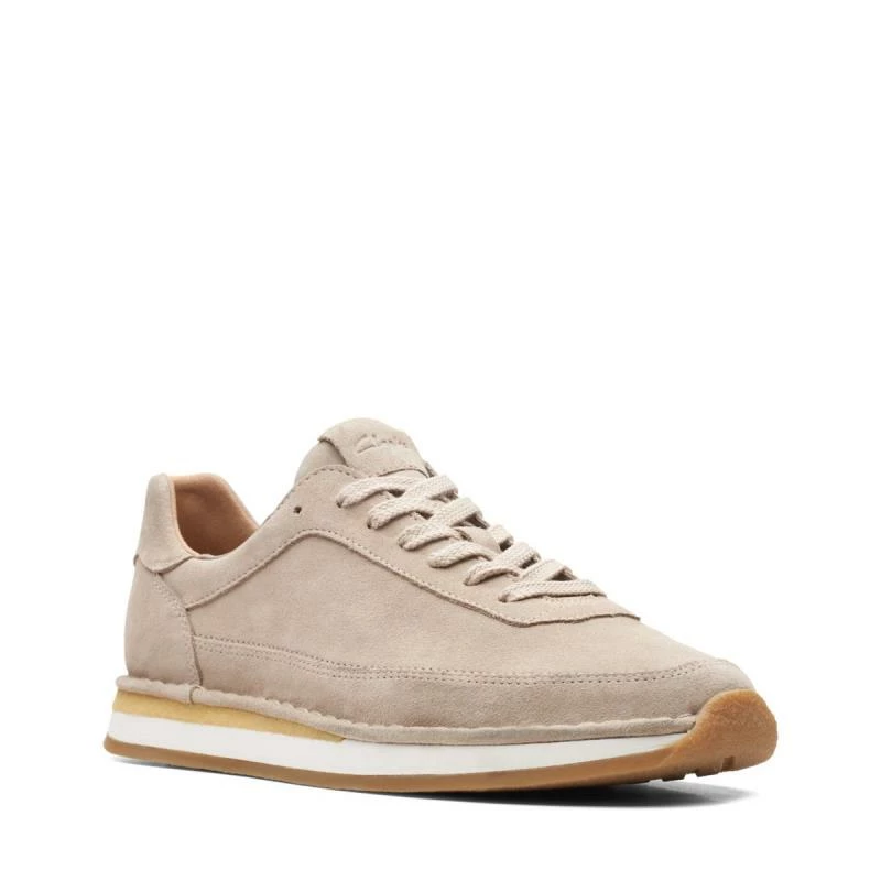 A streamlined silhouette melds with heritage styling in athleisure-inspired sneaker Craft Run Lace. Rich, responsibly sourced sand suede teams with a crepe layer in the sole, for a fresh take on vintage Clarks design. Expertly crafted for life on-the-go, the lightweight, grippy and durable soles keep you moving with ease, combining with removable Cushion Plus footbeds and breathable leather linings for unbeatable all-day comfort. Recycled materials in footbeds and soles step towards lightening our footprint, too. Simplicity at your feet.