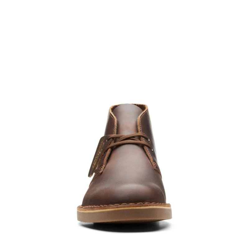 An icon, re-engineered for modern life: introducing the Desert Boot 2, finished in premium beeswax leather. Remaining true to the authentic, instantly recognizable design of Nathan Clarkβs pioneering Desert Boot created in 1950, it delivers enhanced, unrivalled comfort for the effortless all-day wear that 21st-century life demands. A slightly wider last gives a more tailored fit, and the layered OrthoLite footbed with gait mapping technology provides targeted, breathable cushioning for improved posture and easy, comfortable steps. The crepe-effect natural rubber sole has an authentic look, offering optimized grip, durability, and a lightweight feel. The ultimate balance of heritage style with technical evolution β true to the progressive spirit of Clarks.