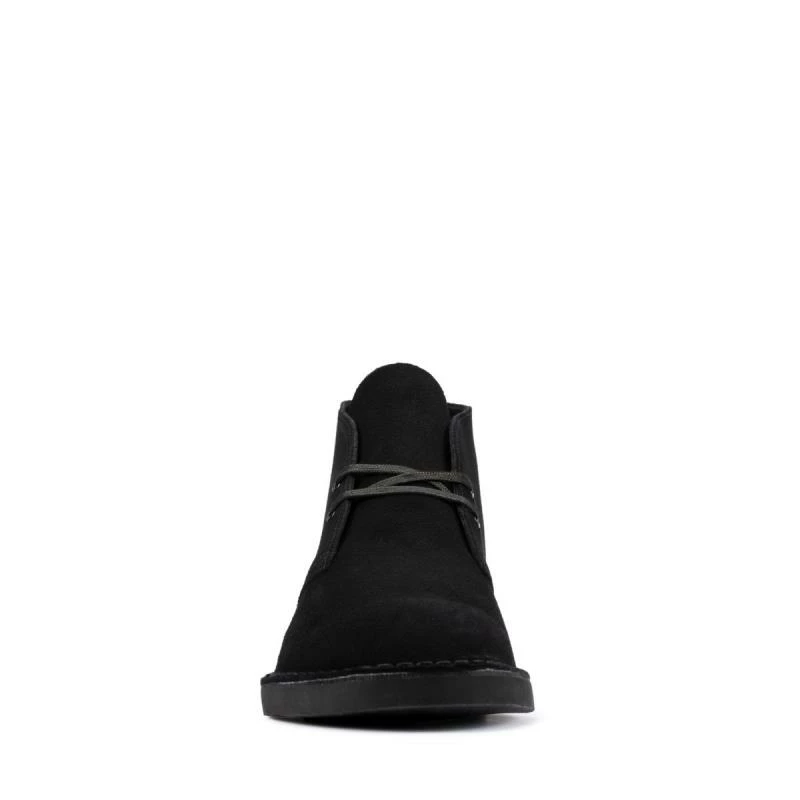An icon, re-engineered for modern life: introducing the Desert Boot 2, finished in premium black suede. Remaining true to the authentic, instantly recognizable design of Nathan Clarkβs pioneering Desert Boot created in 1950, it delivers enhanced, unrivalled comfort for the effortless all-day wear that 21st-century life demands. A slightly wider last gives a more tailored fit, and the layered OrthoLite footbed with gait mapping technology provides targeted, breathable cushioning for improved posture and easy, comfortable steps. The crepe-effect natural rubber sole has an authentic look, offering optimized grip, durability, and a lightweight feel. The ultimate balance of heritage style with technical evolution β true to the progressive spirit of Clarks.
