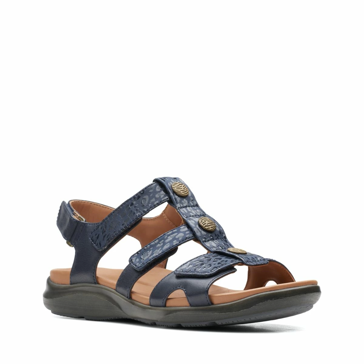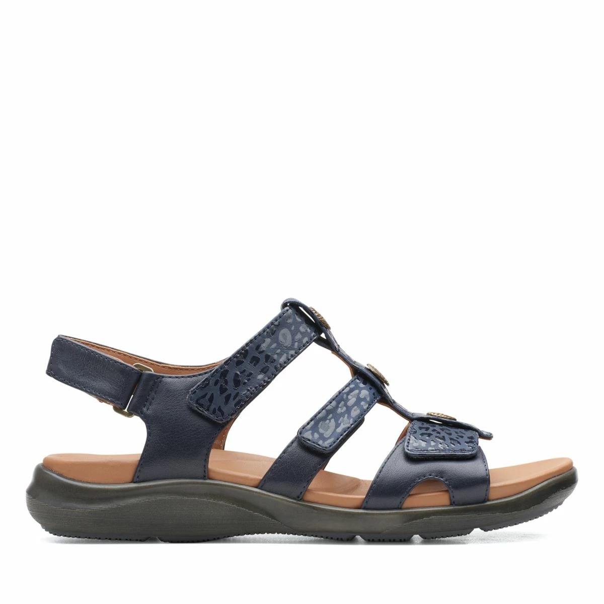 Our spirited Kylyn sandals are packed with comfort features, and capture a modern twist on our casual Clarksheritage. A mix of stylish strappy uppers designed in premium leathers adjust across the foot, while a Contoured Comfort OrthoLitefootbed sits beneath, finished with a long wearng rubber outsole. Innovation and sustainability are key; recycled content features in the heel cup and outsole, and the EVA footbed contains sugar cane compounds.