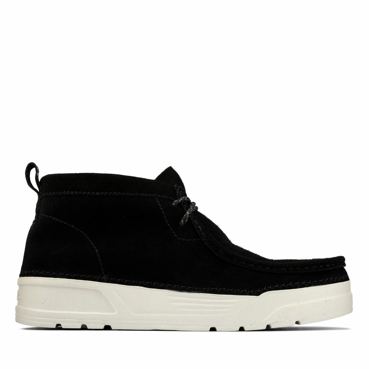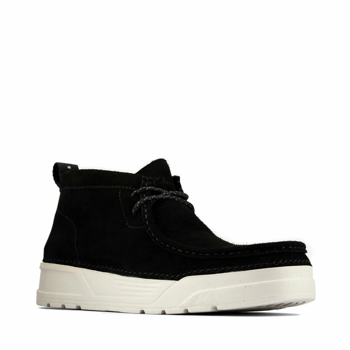 Courtside nostalgia meets iconic Clarks Designed with sustainability in mind, using zero glue and minimal components, our classic Wallabee adopts a sports aesthetic inspired by retro basketball sneakers from the 60s / 70s. A recycled OrthoLite footbed provides extra cushioning for all-day comfort. Breathable leather sock linings help keep feet fresh. The sidestitch construction of the black suede upper provides superior flexibility and is fitted out with a 51% regrind recycled ExtraLight? sole.