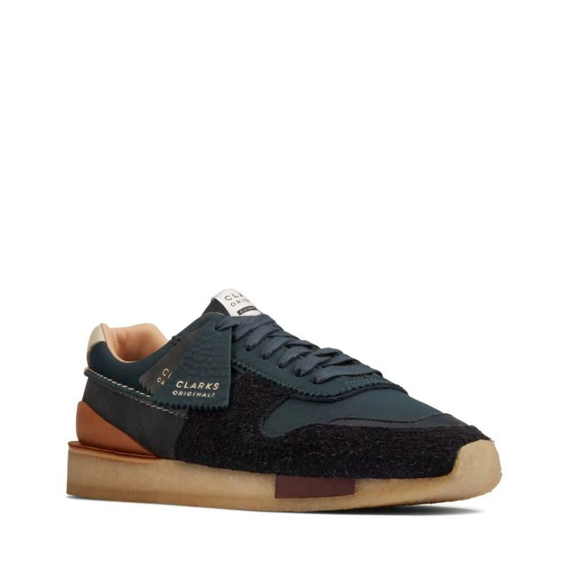 Championing considered design, quality materials and innovative technology, heritage-inspired Tor Run uses crafted seams and colour detailing to create the ideal mix of style and comfort on a premium retro-running silhouette. Constructed from a tactile mix of blue suede, hairy suede, nubuck and full grain leather, its soft stitch-down construction recalls iconic Clarks design DNA. A 100% vegetal leather heel and EVA inserts deliver next-level flexibility and stability, and Forest Stewardship Council -certified natural rubber crepe makes the sole one of our most environmentally responsible ever.
