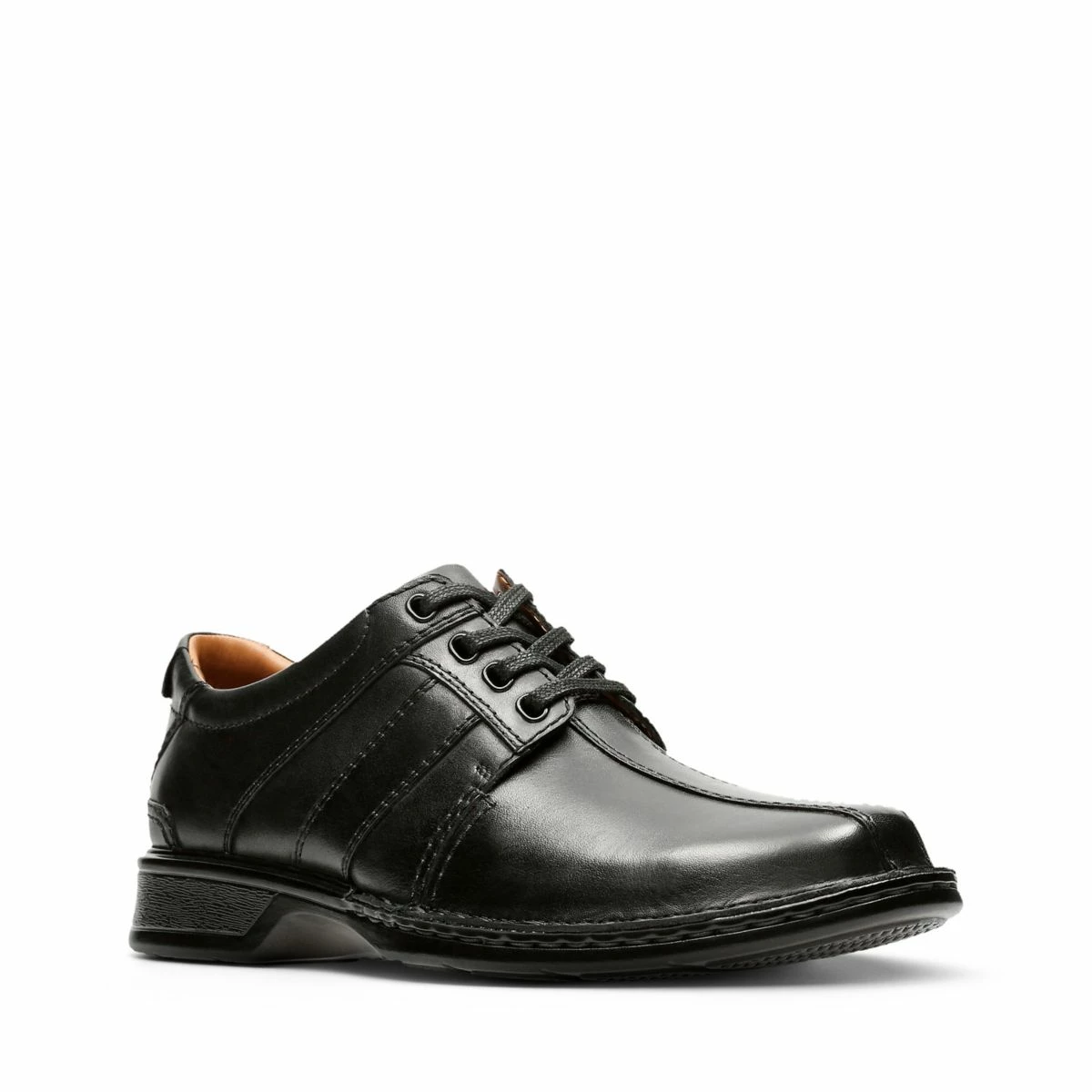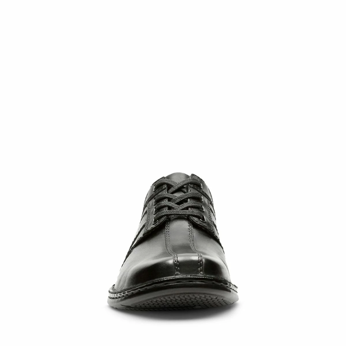 Take on relentless days with unbeatable comfort. The Touareg Vibe from the Clarks Collection combines the refinement of a business shoe with the smart functionality of a sneaker. Crafted of smooth black leather, this men’s shoe features thick laces and a chunky sole that can take on a rugged terrain. An OrthoLitefootbed ensures comfort and decorative stitching adds subtle styling.