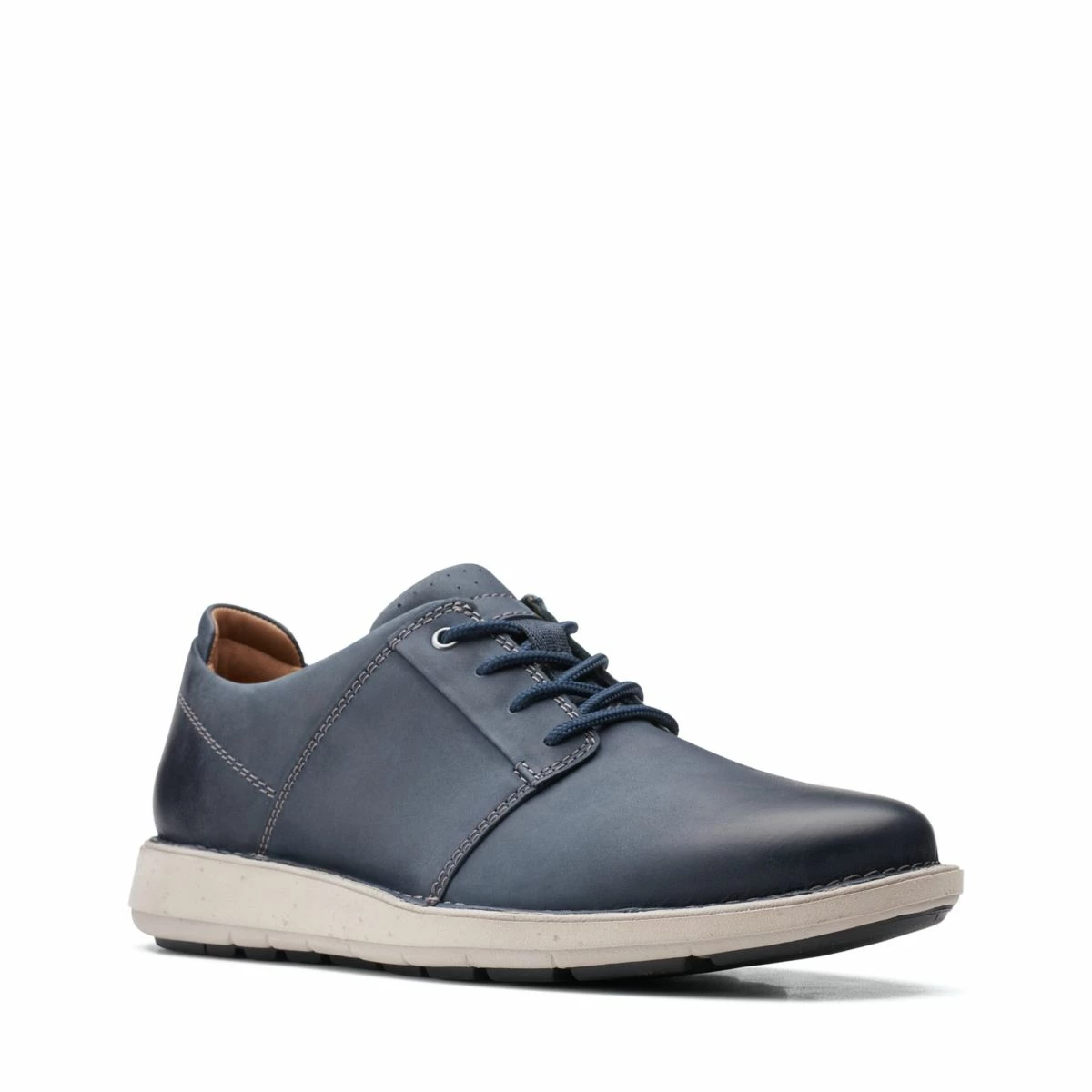 From our Unstructuredcollection comes this sporty casual style that is perfect for urban exploring. The?navy leather upper with subtle stitching offers that crafted look and feel, while a lightweight EVA midsole and cleated rubber outsole offers durability, grip and flexibility. Finished with an OrthoLite footbed and leather linings, these shoes offer maximum comfort for all day.
