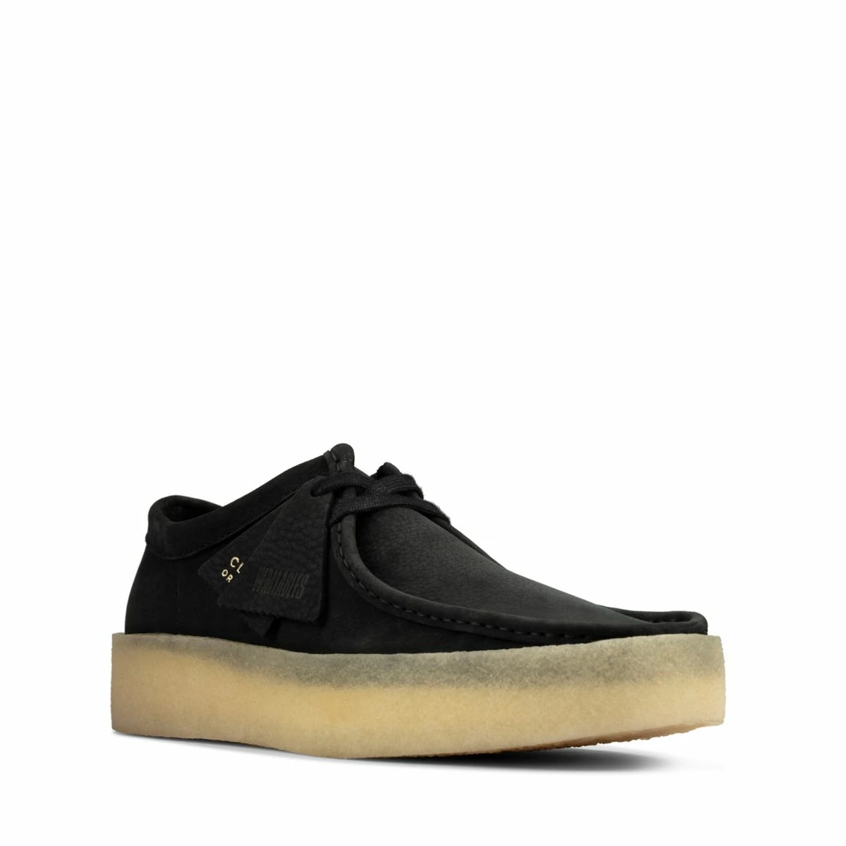 Inspired by the very first pattern and last of our classic moccasin, this low-cut black nubuck Wallabee Cup features a heavy crepe wrap and distinctive webbed detailing on the heel.