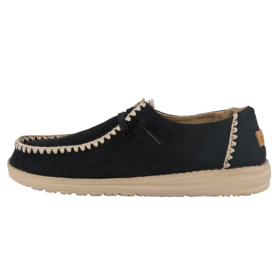 The Wendy Crochet embodies the Hey Dude lifestyle by combining your passion for comfort, quality, and fashion, designed to be your lightweight ultra-comfortable Dude shoe for all occasions. Includes a chambray upper and contrasting crochet detail, finished with a pinched seam.SHOE SPECS:Flex amp; Fold TechnologyUltra-Light outsoleChambrayupperSlip-onCork InsoleContains No Animal By-ProductsMachine washable (cold)5.6 oz. weight per shoe
